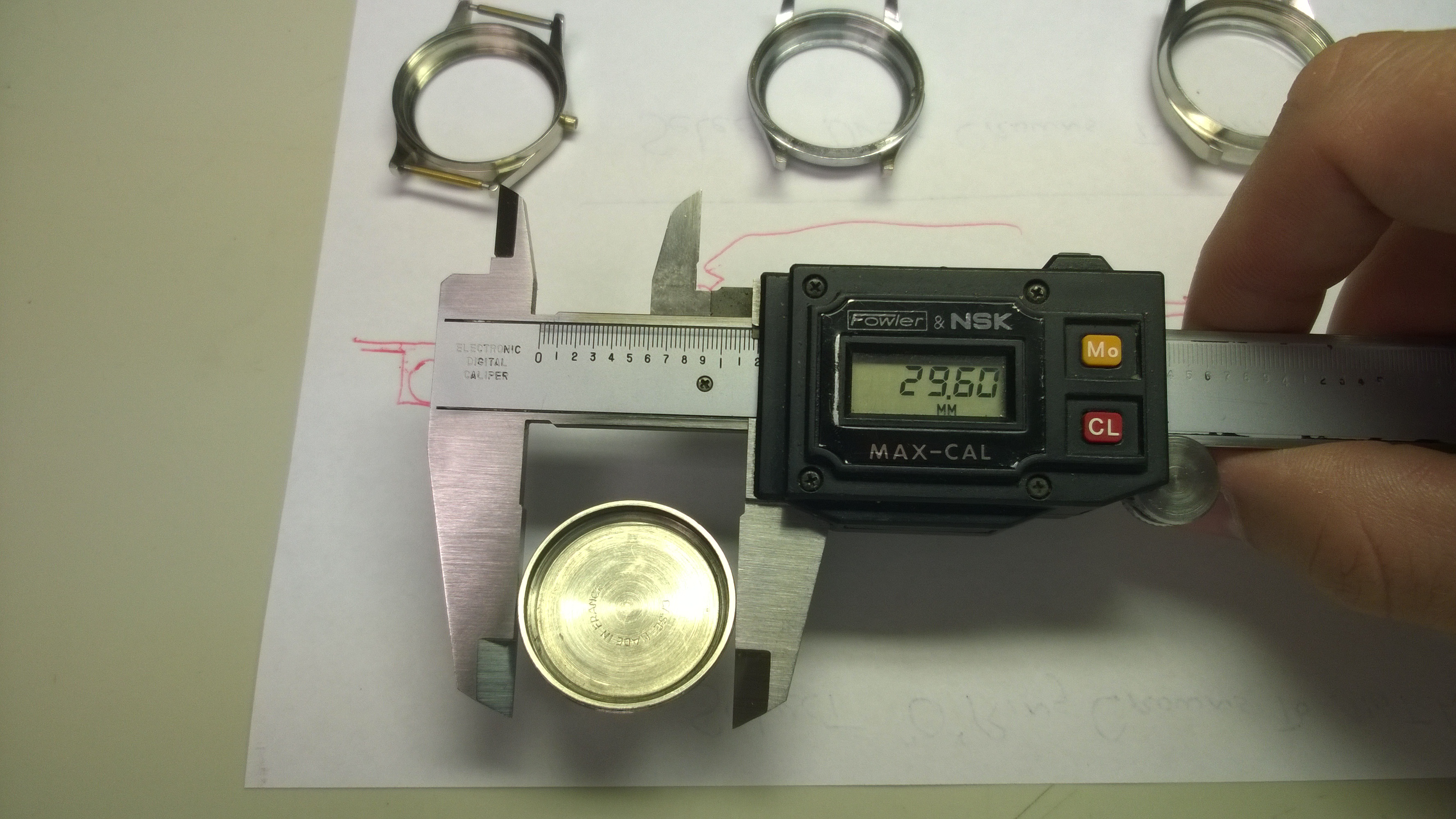 Getting back to the exercise. The set-up was pretty simple (at least compared to the crown exercise!). Three watch cases, a small box of gaskets, and a pair of digital calipers. We had to measure the internal diameter of the case and case back, and figure out what size gasket was required for the case.