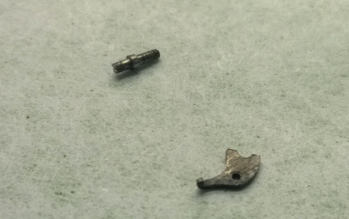Here is what the set lever and screw looks like. The notch that you see on the left of the lever sits in a spot in the stem. When the stem slides between positions of winding and setting the lever rotates around the screw and engages the setting mechanism. Here are a few pictures from the watch tear down.