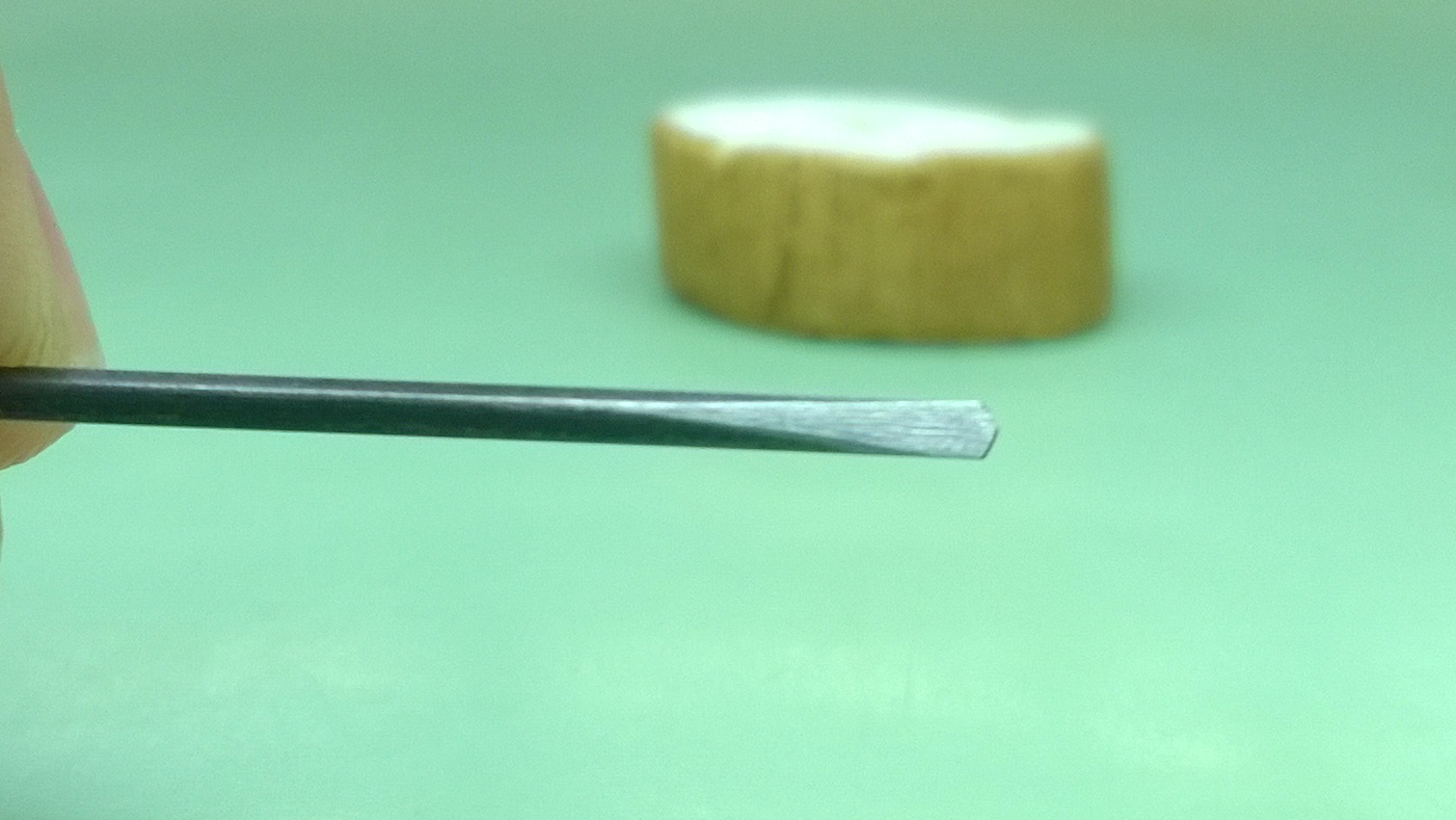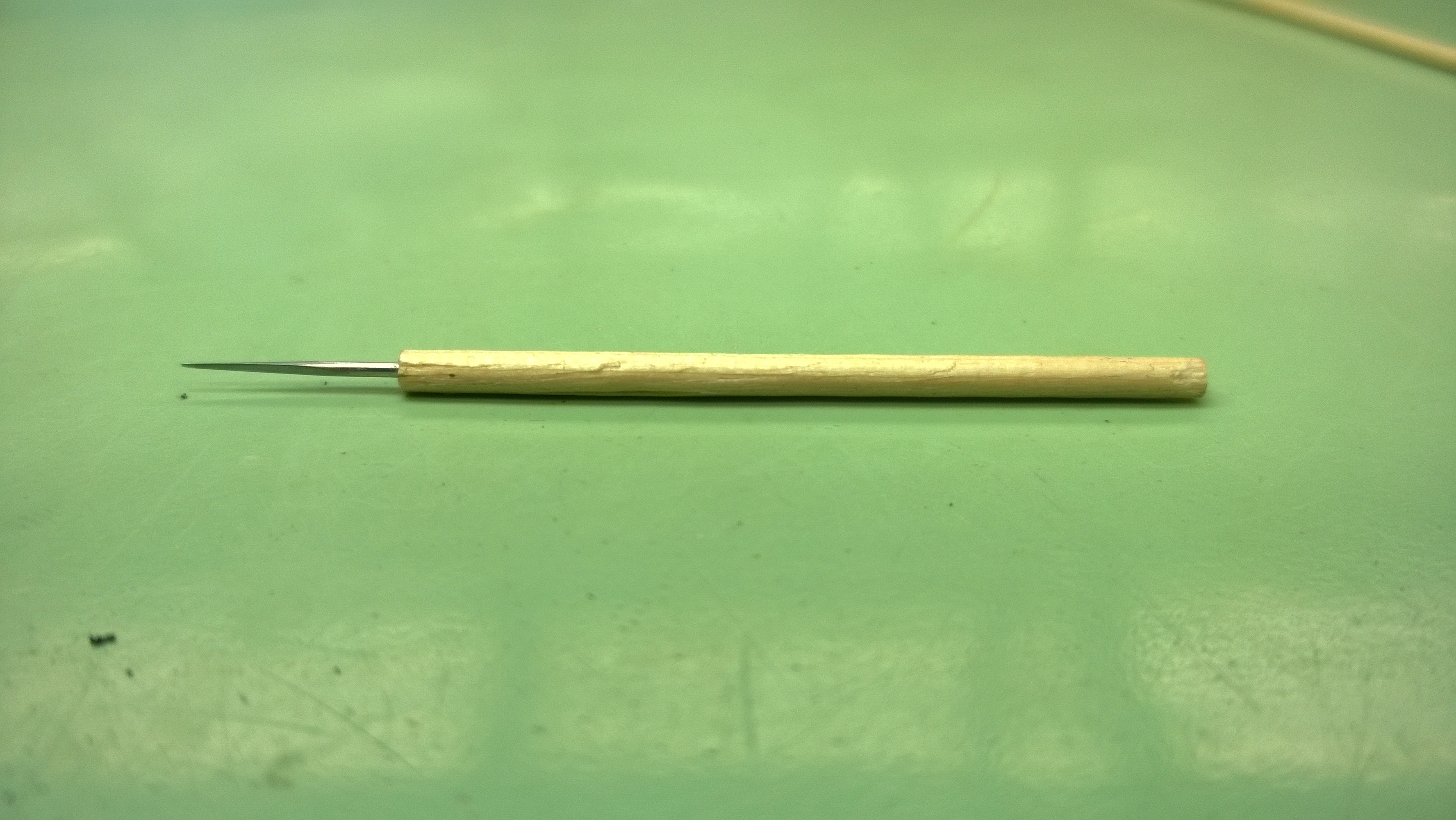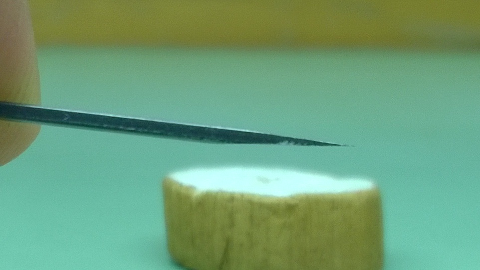 Once I finished the rod, Mr. Poye gave me a sewing needle and told me to make a wedge. A very thin wedge.