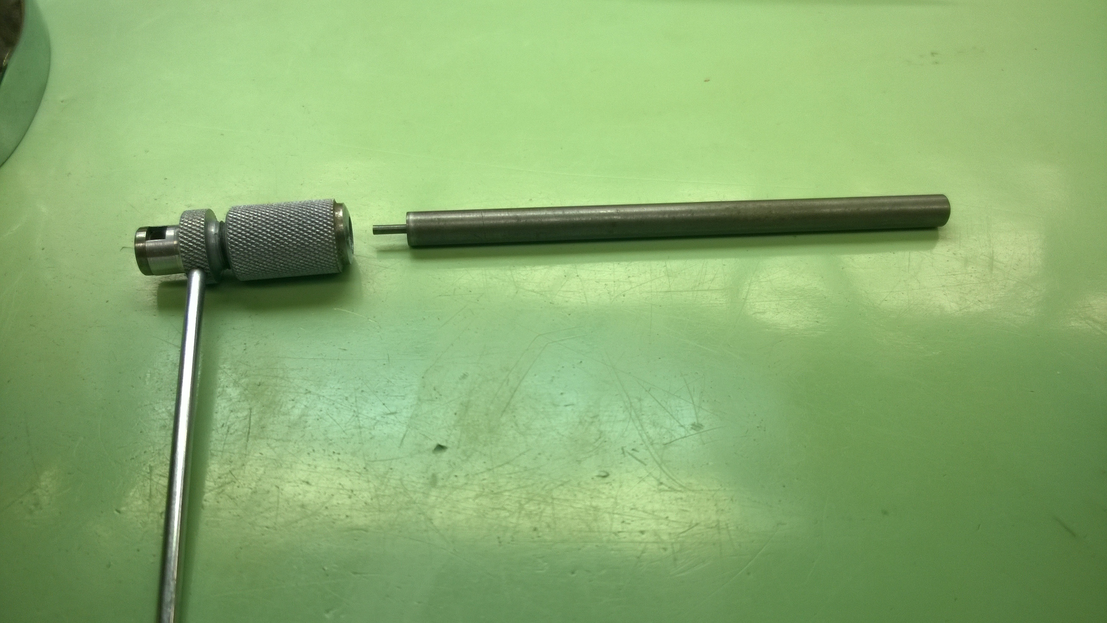 These are the tools that you use to remove the balance staff (in addition to the staking base). The part on the right is the stake that will be removing the staff, and the part on the left goes around the balance wheel and keeps it steady during the removal procedure.
