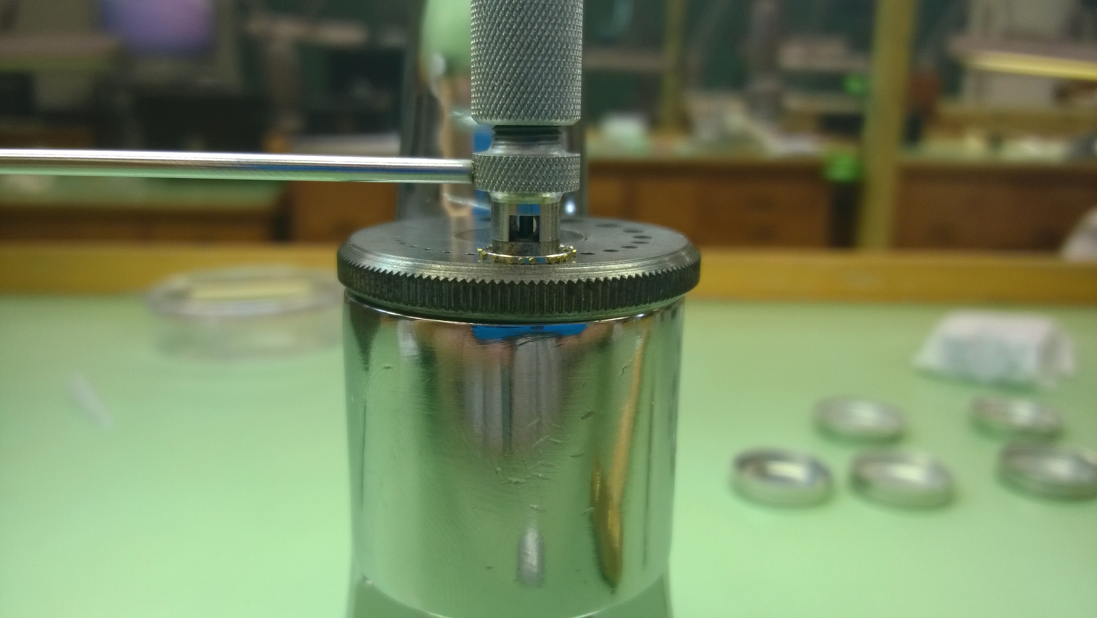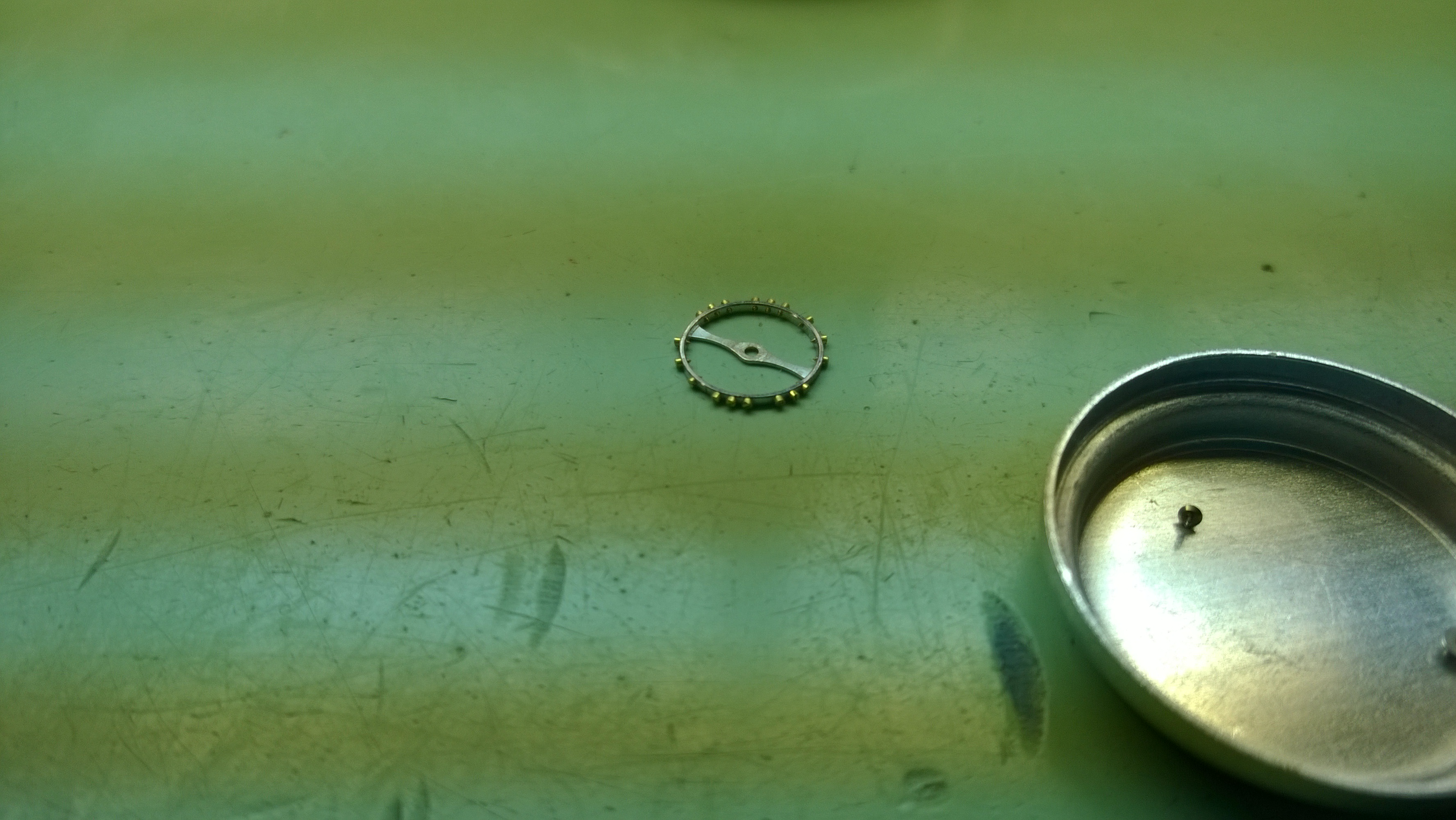 Another tap with the hammer and the staff will drop through the staking tool and you will now have a useless staff and a balance wheel that is ready to be staffed.