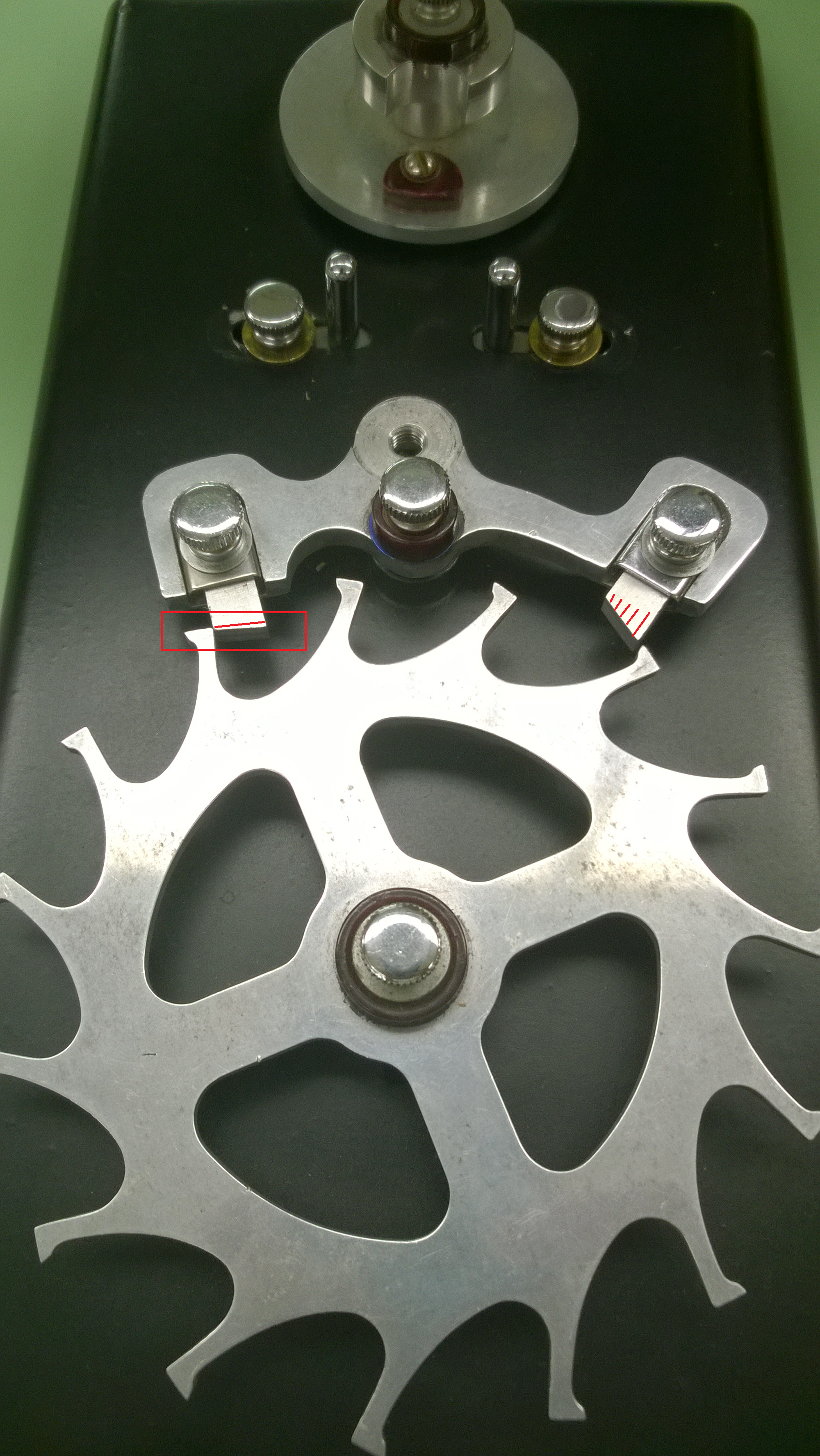 Once you have all the locks where they need to be, the next step do with this model is adjust the pallet shank and make sure it is centered.