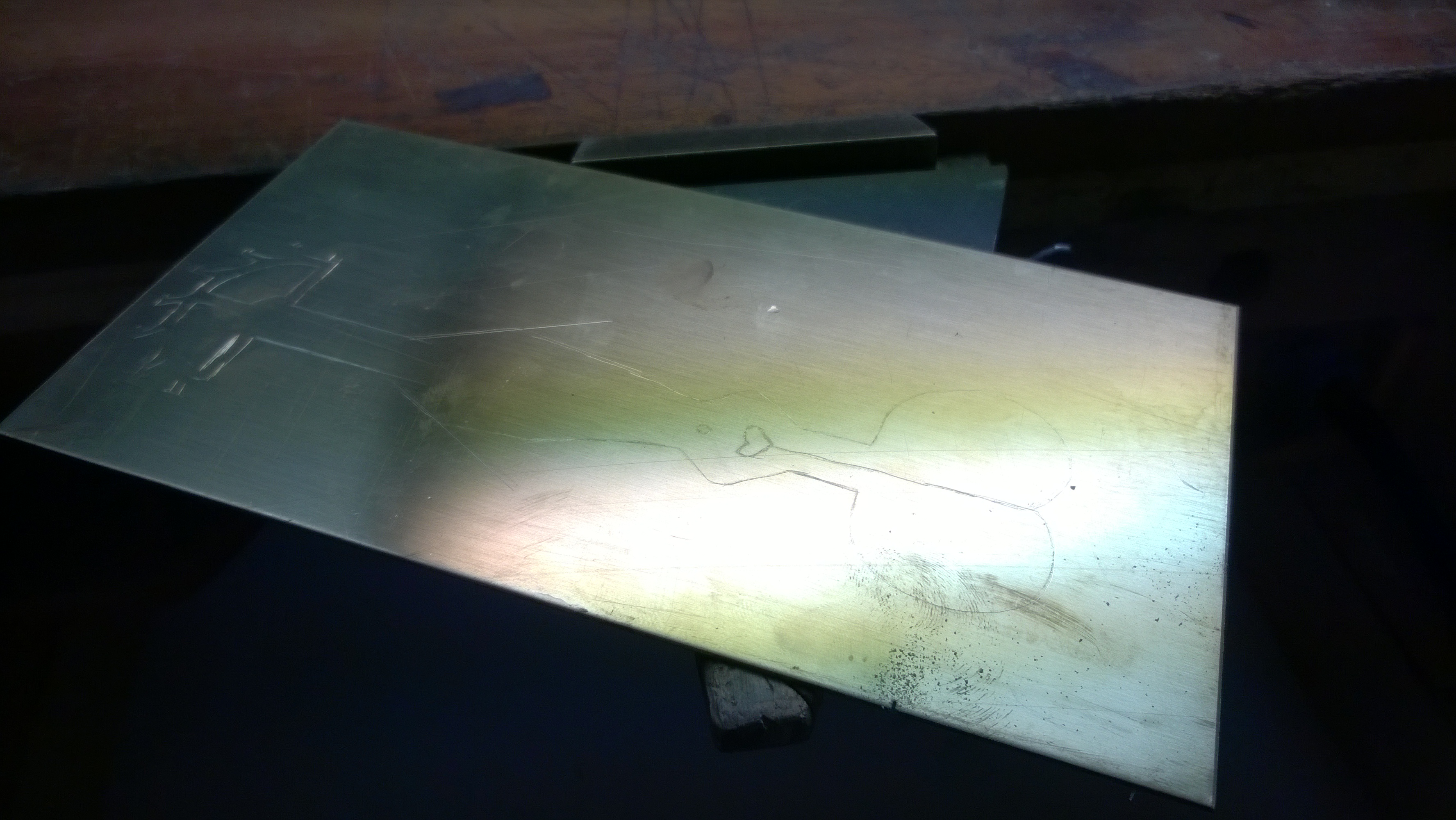 After class on Friday, I met up with a couple of my watchmaking classmates and we worked on making some tools. I started off working on a pallet warmer. I modified the template that I was given and tried to transfer it to a sheet of brass using an acetone process. Unfortunately, the design didn’t have thick enough lines, so the transfer didn’t go through as well as it could have, and I ended up free-hand tracing the design with a scrying tool, and then cut it out with a jewelers saw.
