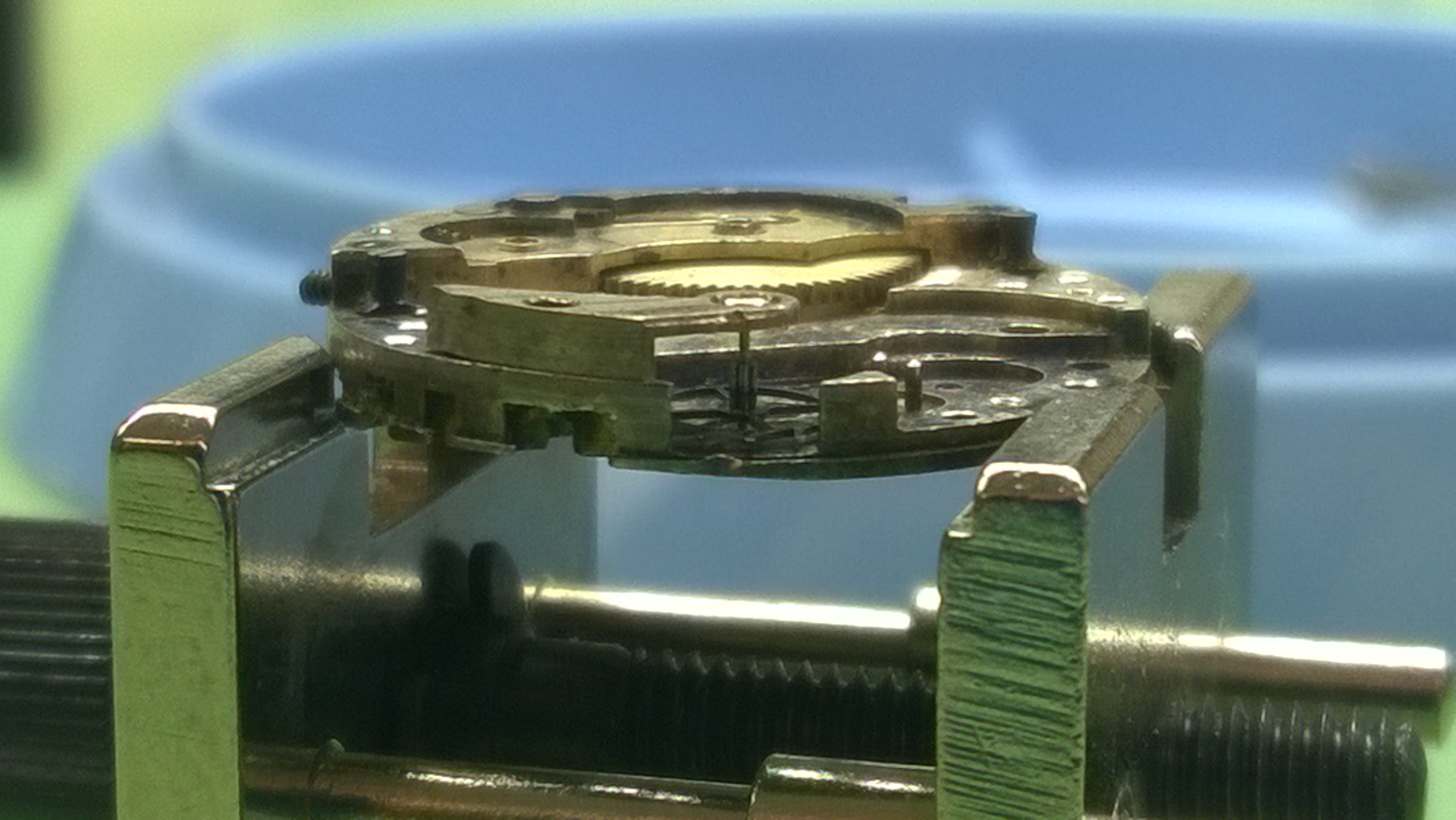 Everything looked great from this angle. I had Mr. Poye check my work and he told me it was good. On Monday, I’ll be doing the same process, but on the plate of the watch. If all is said and done, the escape wheel should be nestled nicely between two new jewels and spinning freely.