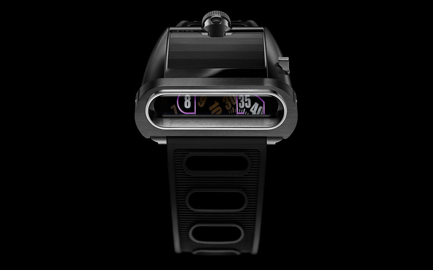 The latest entry into the Horological Machine Line has is the HM 5. Drawing inspiration from the supercars of the 70’s MB&F created an interesting case that utilizes a prism to “project” the time onto a screen mimicking the instrument panels of a car dashboard.