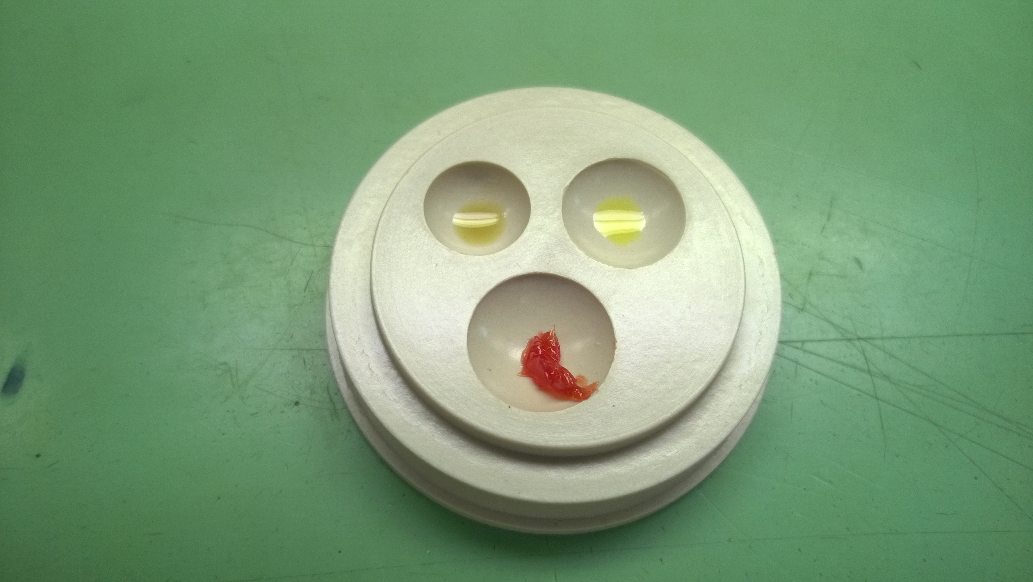 I got a new oil to use-the top left oil is Moebius D5. It is a thick oil/thin grease. Instead of using the KT-22 on the stem, winding pinion and clutch wheel, I used the D5. Also, for some of the wheels, I used the D5.